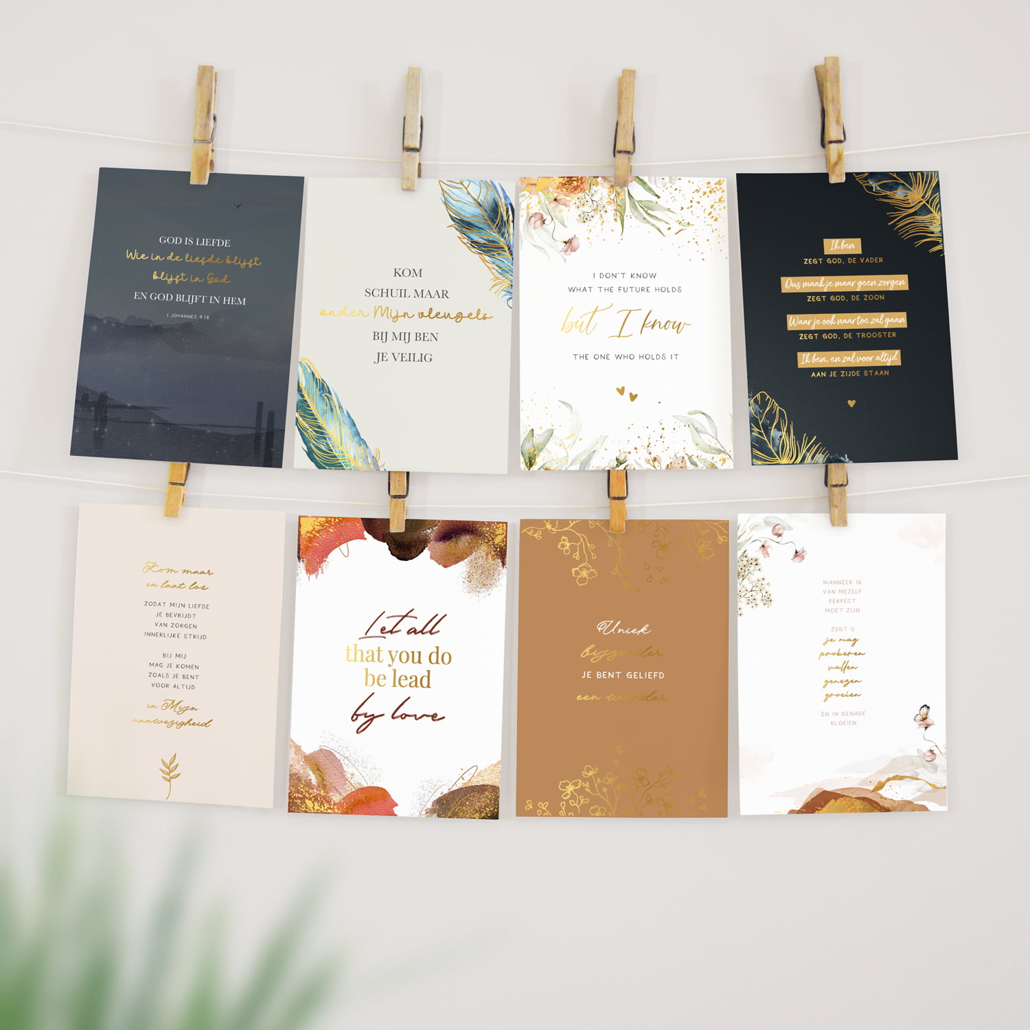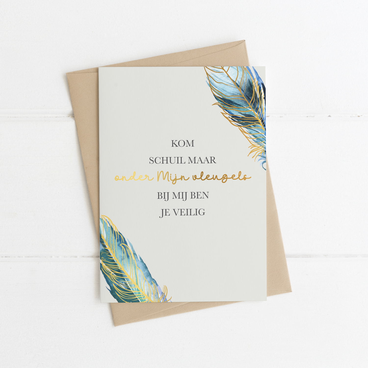De kaarten zijn gedrukt op stevig gestreken papier, afgewerkt met een prachtig opdikkend gouden folie laagje wat een luxe uitstraling geeft aan de kaart.